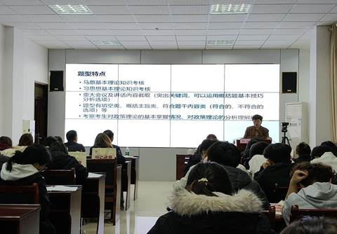为精准对接我院学子国考备考需求,帮助学生把握考试趋势、提升备考效能,2025年10月30日晚,贵州财经大学副教授顾泉博士应邀来到马克思主义学院人文楼313学术报告厅开展“国考形势分析与考试技巧”专题讲座。讲座由学院党委副书记鲍中义主持,学院教师和本科生60多人共同聆听了本次讲座。