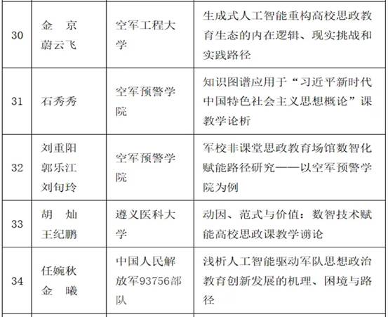 近日,空军预警学院首届“雪莲论坛”征文活动评选结果揭晓,我院胡灿、王纪鹏合作撰写的论文《动因、范式与价值:数智技术赋能高校思政课教学谫论》凭借扎实的理论功底、创新的研究视角和鲜明的实践导向,在众多投稿中脱颖而出,荣获三等奖,为学院赢得荣誉。