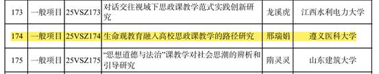 近日,全国哲学社会科学工作办公室公布了2025年度国家社科基金高校思想政治理论课研究专项立项名单,我院党委副书记、副院长(主持工作)邢瑞娟教授申报的《生命观教育融入高校思政课教学的路径研究》获批立项。这是我校首次获批国家社科基金高校思想政治理论课研究专项项目,实现了我校在国家社科基金思政专项的重大突破。据悉,该项目也是今年贵州省获批的唯一一项思政专项项目。