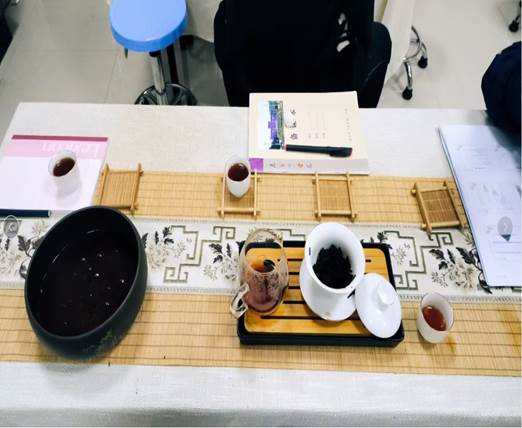 会上,罗海波老师从茶树种植、茶叶分类、制茶技艺、茶艺展示、茶的传播五个方面讲解茶文化,同时分析比较印度茶叶种植、日本茶道,指出中国作为世界茶文化的真正源头是毋庸置疑的。罗海波老师认为,贵州是我国产茶大省,又有着悠久的茶叶制作历史,将茶文化引入课堂教学,既符合课程教学目的,又可以增强学生的文化自信,一定会赢得学生的欢迎。